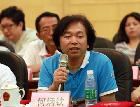 景德鎮學院教授何炳欽發言。(王東 攝)