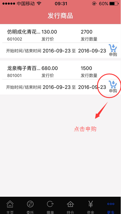 第六步:進入界面并點擊“申購”,如圖1-6