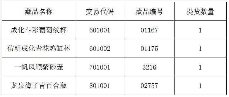 2016132關于交易藏品《成化斗彩葡萄紋杯》等提貨公告