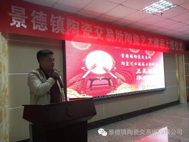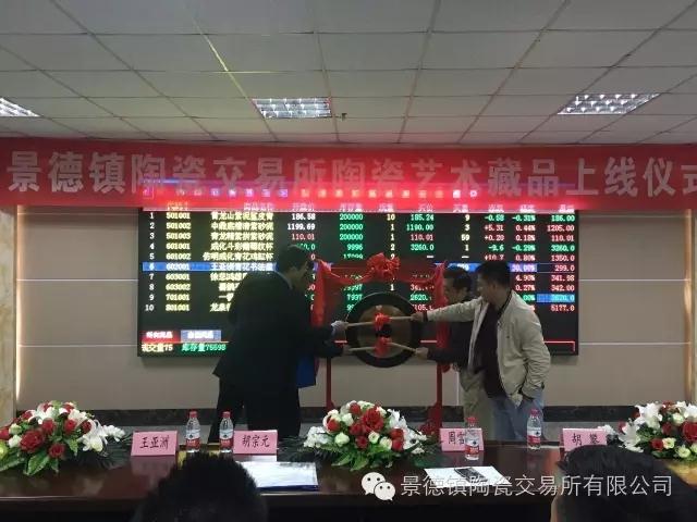 2016年11月15日,微風拂面,細雨蒙蒙,伴隨著一陣陣清脆的鑼聲,景德鎮陶瓷交易所在會展大廳隆重舉行了第六批藏品上線儀式,此次發行機構為北京時代新藝雕塑設計有限責任公司。到場的領導有景德鎮陶瓷交易所執行董事周雪松、北京時代新藝雕塑設計有限公司總經理胡宗元、安徽省書協副主席王亞洲、副總經理胡攀、市場部經理劉輝、財務部經理徐東平以及景德鎮市高級陶瓷工藝師馬易柱,在此大家共同見證了陶交所這一激動人心的重要時刻。